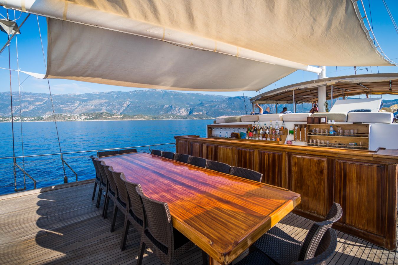 Dining aboard Alaturka 81 is a celebration of flavor. Enjoy expertly prepared Turkish and Mediterranean dishes crafted from the finest locally sourced ingredients. From freshly caught seafood to flavorful mezes, every meal is paired with fine wines and served in an atmosphere of casual elegance—whether under the stars or shaded from the midday sun.