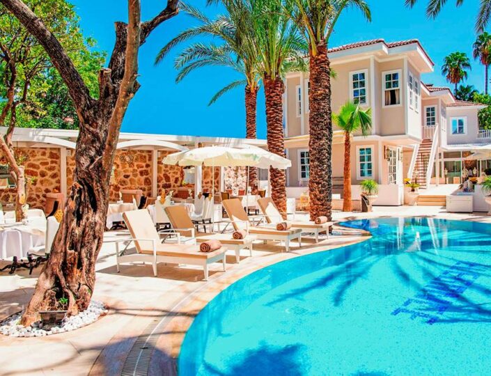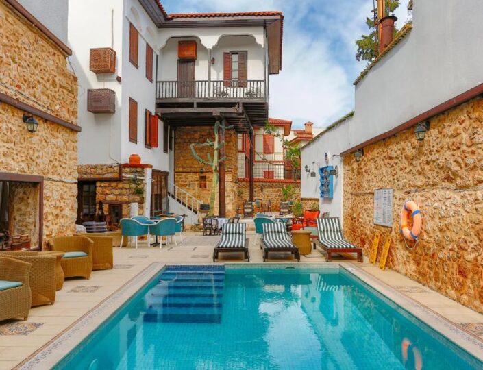 Set in a luxurious Mediterranean-style home in Antalya’s historic center, this boutique hotel offers an unbeatable location, attentive staff, and an elegant poolside restaurant.