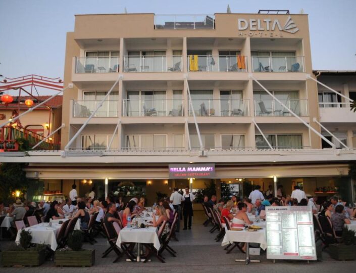 Located on Calis Beach, The Delta Hotel offers comfortable accommodations, personalized service, and stunning views over Fethiye Bay—perfect for enjoying delicious food and drinks by the sea.