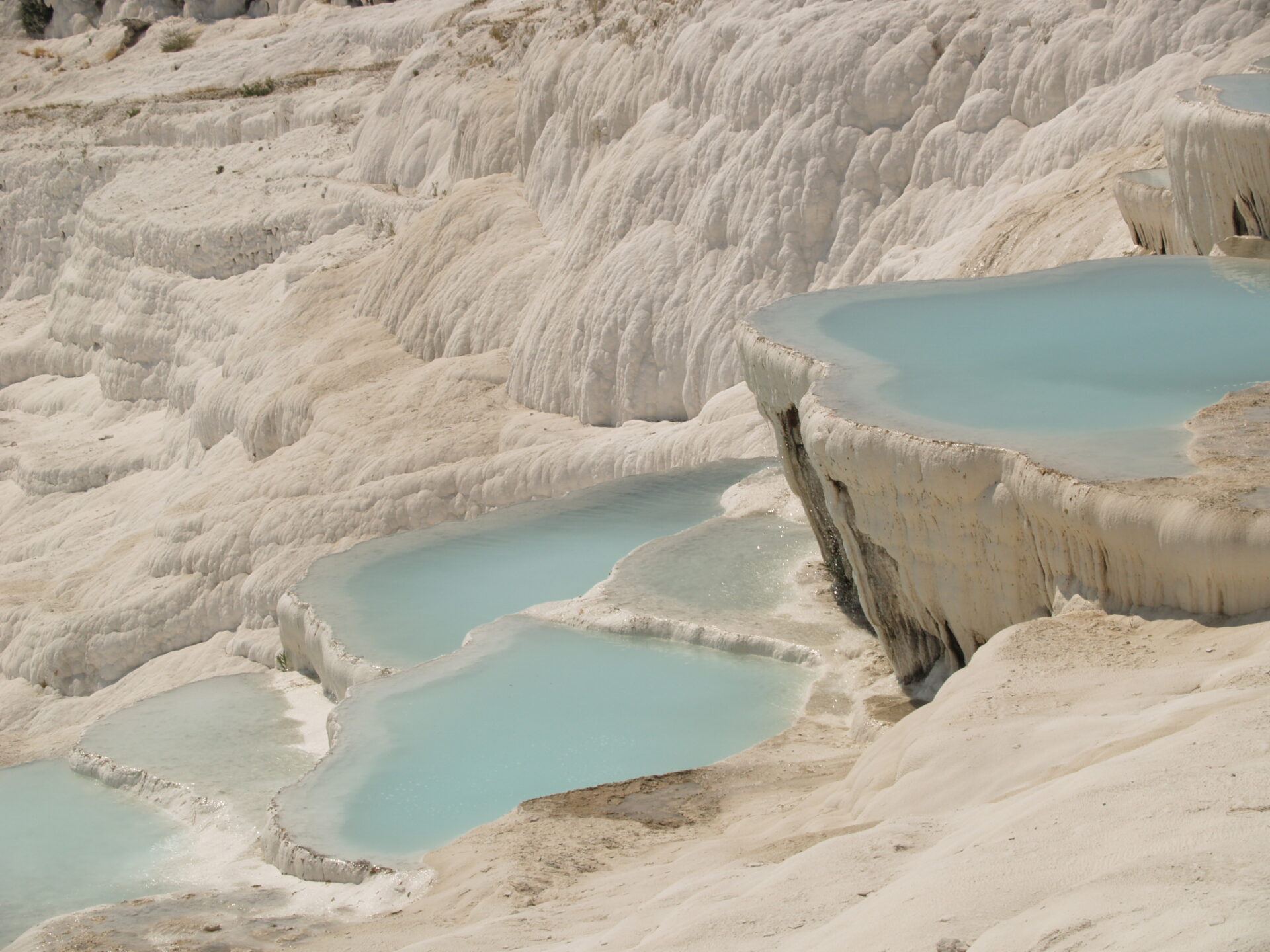 ✅ Walk barefoot along the dazzling white terraces, feeling the soft calcium deposits beneath your feet.